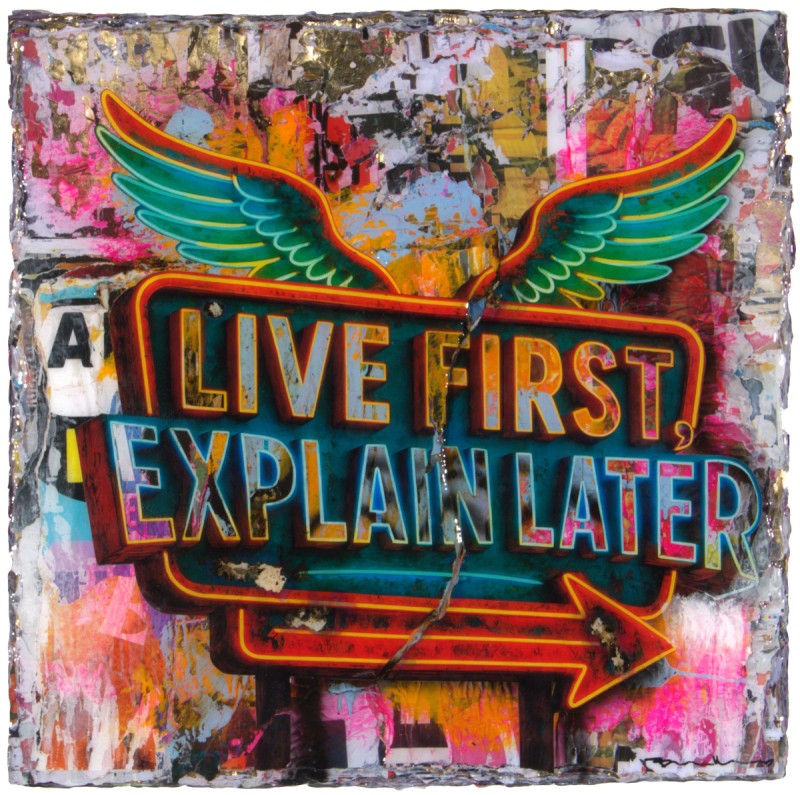 - Op billboard basis, collage met gemengde techniek en hoogglans epoxy