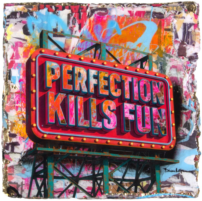 - Op billboard basis, collage met gemengde techniek en hoogglans epoxy