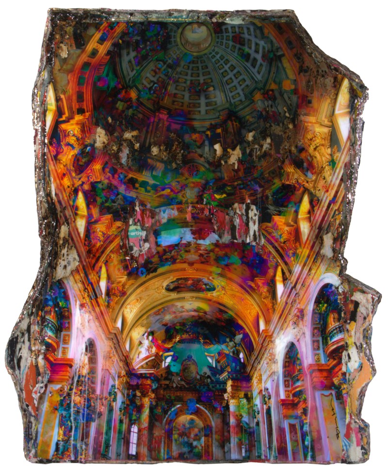 - Op billboard basis, collage met gemengde techniek en hoogglans epoxy